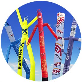 Die aufblasbaren Skydancer, Airtubes, Skytubes sind die ideale LIVE-Marketing-Werbung für Ihre Marke. Mit tanzenden Bewegungen ziehen die lustigen Figuren die Aufmerksamkeit auf Ihr Unternehmen. Ihre Werbebotschaft als coolen Tanz präsentieren und in Erinnerung bleiben, einfacher geht es nicht! Aufblasbare Skydancer sind seit Jahren die beliebtesten Werbeprodukte in der aufblasbaren Werbebranche. Kaufen Sie jetzt Ihren bedruckten Skydancer, Airtube, Sktytube bei uns und profitieren Sie!