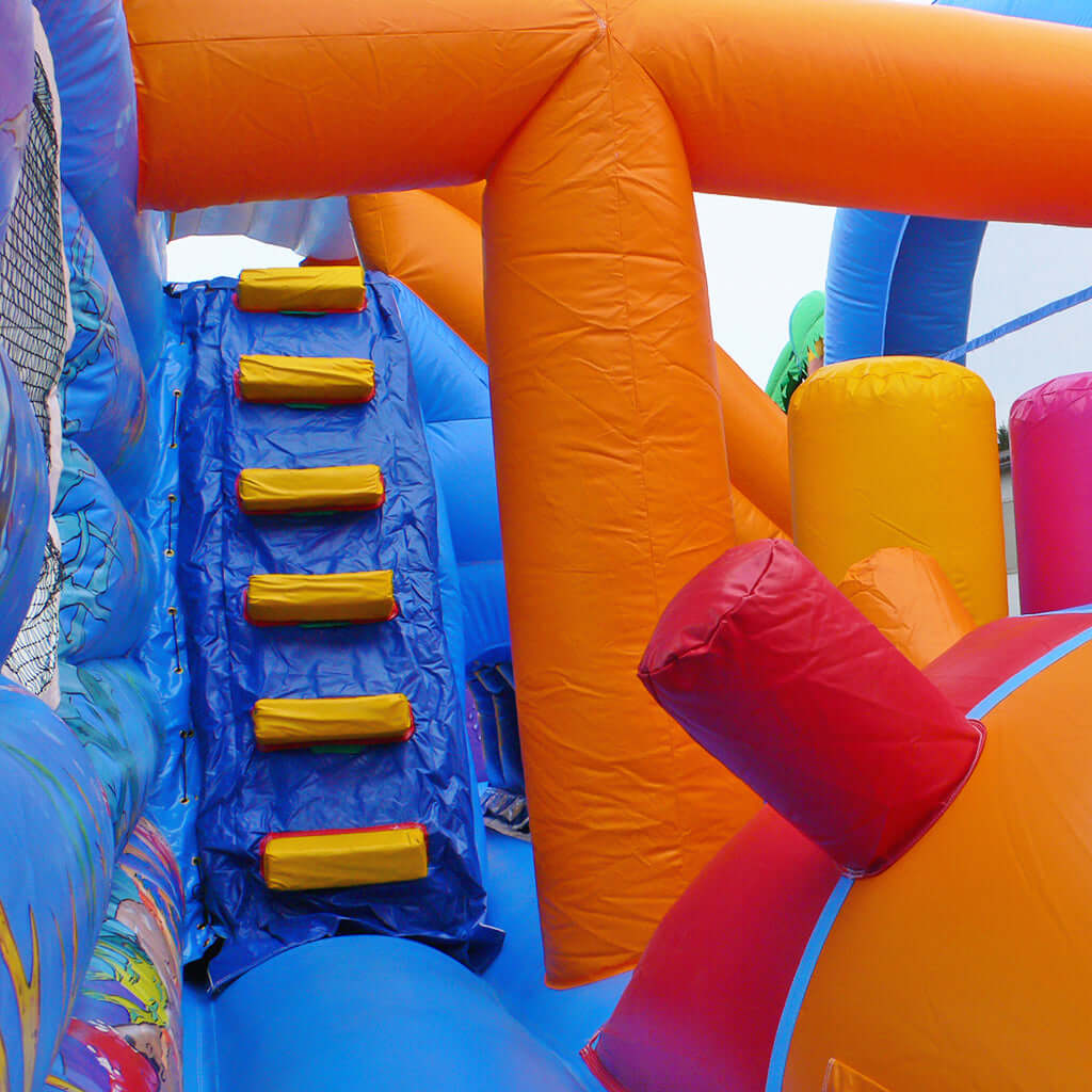 Die Active Center Hüpfburg Delphin bietet mit zentraler Rutsche, Kletterpyramide und Hindernisparcours ein actiongeladenes Erlebnis für Kinder. Umgeben von Wellen, Palmen und Meeresmotiven entsteht eine fantasievolle Unterwasserwelt, die zum Spielen und Entdecken einlädt. Die rutschfesten Flächen, stabilen Netzwände und das verstärkte PVC sorgen für Sicherheit und Langlebigkeit. Mehr Modelle ansehen, die ähnliche Abenteuerwelten bieten, und entdecken, welche Hüpfburgen sonst noch für unvergessliche Sommertage bereitstehen!