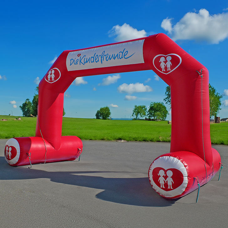Der aufblasbare Torbogen mit abgeschrägtem Design und stabilem Standfuß ist ein echter Blickfang für jede Veranstaltung. Dank des integrierten Standfußes ist der Torbogen freistehend und benötigt keine zusätzliche Abspannung – ideal für flexible Einsätze auf Asphalt oder Indoor-Events, ein typisches Beispiel aus unserer Linie realisierter Torbögen. Er wird individuell nach Ihren Wünschen gestaltet – inklusive vollflächigem Komplettdruck für maximale Markenwirkung. Ein integriertes Dauergebläse sorgt für einen schnellen Aufbau. Perfekt als Start-/Zielbogen, Eingangsportal oder Werbeträger. Optional ist eine LED-Beleuchtung für abendliche Einsätze erhältlich.