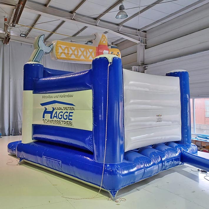 Die maßgeschneiderte Hüpfburg „Baukran Hagge Schweißbetrieb“ ist ein echtes Highlight für Events und Firmenveranstaltungen. Mit ihrem einzigartigen Design, das einen Baukran und Werkzeuge integriert, sorgt sie für große Aufmerksamkeit und Spielspaß – eine Lösung, wie sie in der Kategorie personalisierte Hüpfburgmodule angeboten wird. Perfekt für Unternehmen aus der Metallbau- und Schweißbranche, die sich werbewirksam präsentieren möchten.