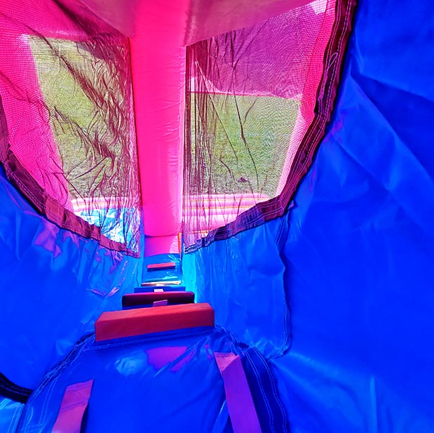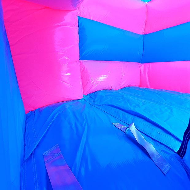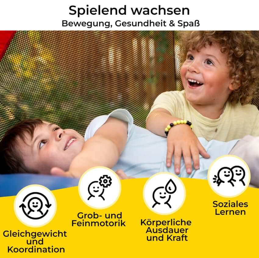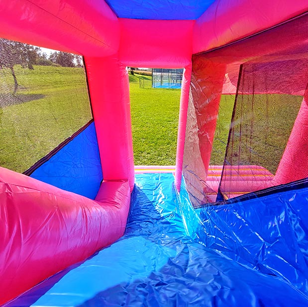 Dank hochwertigem, beidseitig beschichtetem PVC mit 650 g/m² und zertifizierter Brandschutzklasse B1 ist das Material langlebig, wetterfest und sicher. Verstärkte Nähte und stabile Seitenwände sorgen für einen geschützten Spielbereich. Jetzt kaufen und für leuchtende Kinderaugen sorgen!
