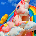 Farbenfrohes Einhorn-Design mit Regenbogen und extralanger Rutsche für Garten & Events