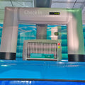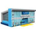 Für einen Flughafen in Deutschland haben wir einen Teil ihres Flughafengebäudes als Hüpfburg nachgebildet. Im Inneren der großen Hüpfburg wartet ein aufblasbarer Check-in-Bereich sowie eine große Hüpffläche zum Springen und eine Rutsche – ein Ansatz, der dem Stil unserer Hüpfburgen im Corporate Design entspricht. Das Flughafenlogo sowie weitere markentypische Elemente wurden im Design widergespiegelt, während das grüne Maskottchen vorne im Eingangsbereich platziert ist.