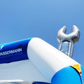 Hüpfburg Installateur mit Rohrzange und Schraubenschlüssel