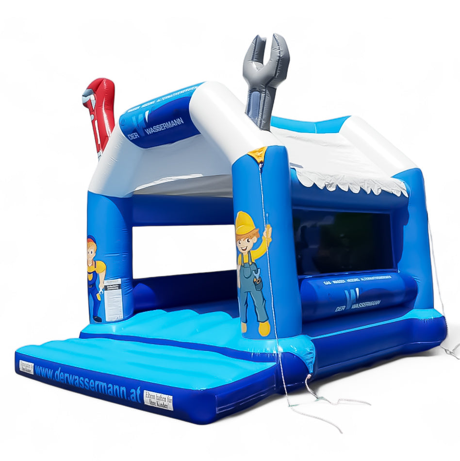 Diese thematische Hüpfburg greift den Alltag von Handwerkern mit aufblasbaren Werkzeugen und fröhlichen Figuren spielerisch auf. Leuchtende Farben und offene Bauweise schaffen Raum für kreativen Hüpfspaß – ein Modell, das vergleichbar ist mit weiteren aufblasbaren Produkten, die exakt nach Wunschvorgabe gefertigt wurden. Ideal für Events mit handwerklichem Bezug, robust gefertigt, langlebig und nach EN 14960 zertifiziert für höchste Sicherheit.