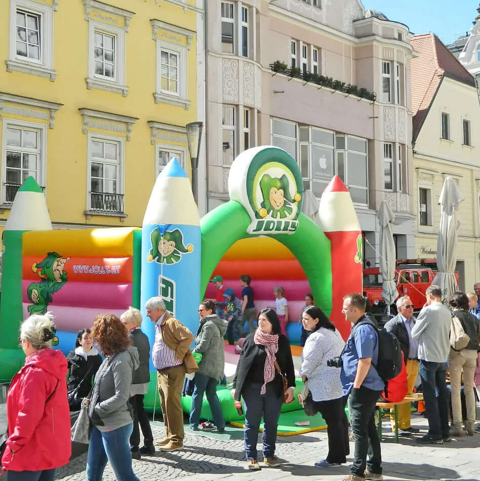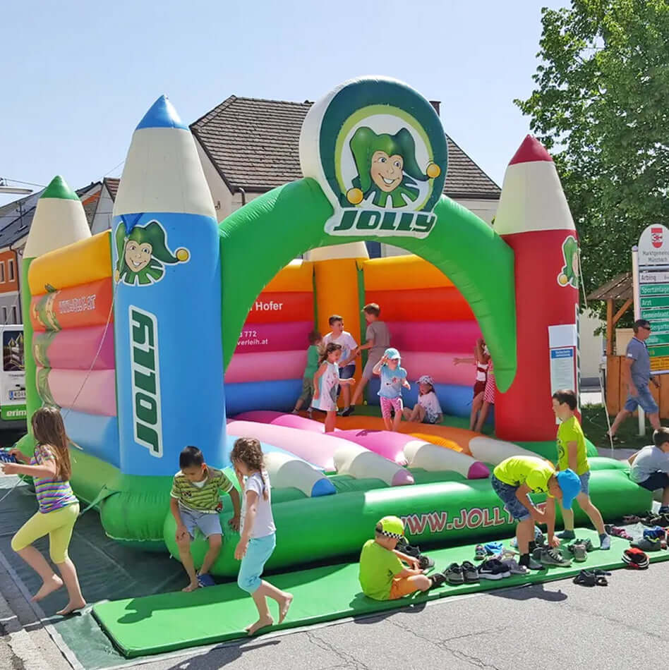 Für ein österreichisches Unternehmen haben wir die Hüpfburg Jolly Buntstifte als Sonderanfertigung realisiert. Marke und Produkte wurden perfekt in die Hüpfburg integriert – bunt, auffällig und sympathisch! Solche Projekte, wie viele kreative Umsetzungen innerhalb unserer Design-Hüpfburg-Modelle, zeigen eindrucksvoll, wie spielerisch Markenbotschaften erlebbar gemacht werden können.
