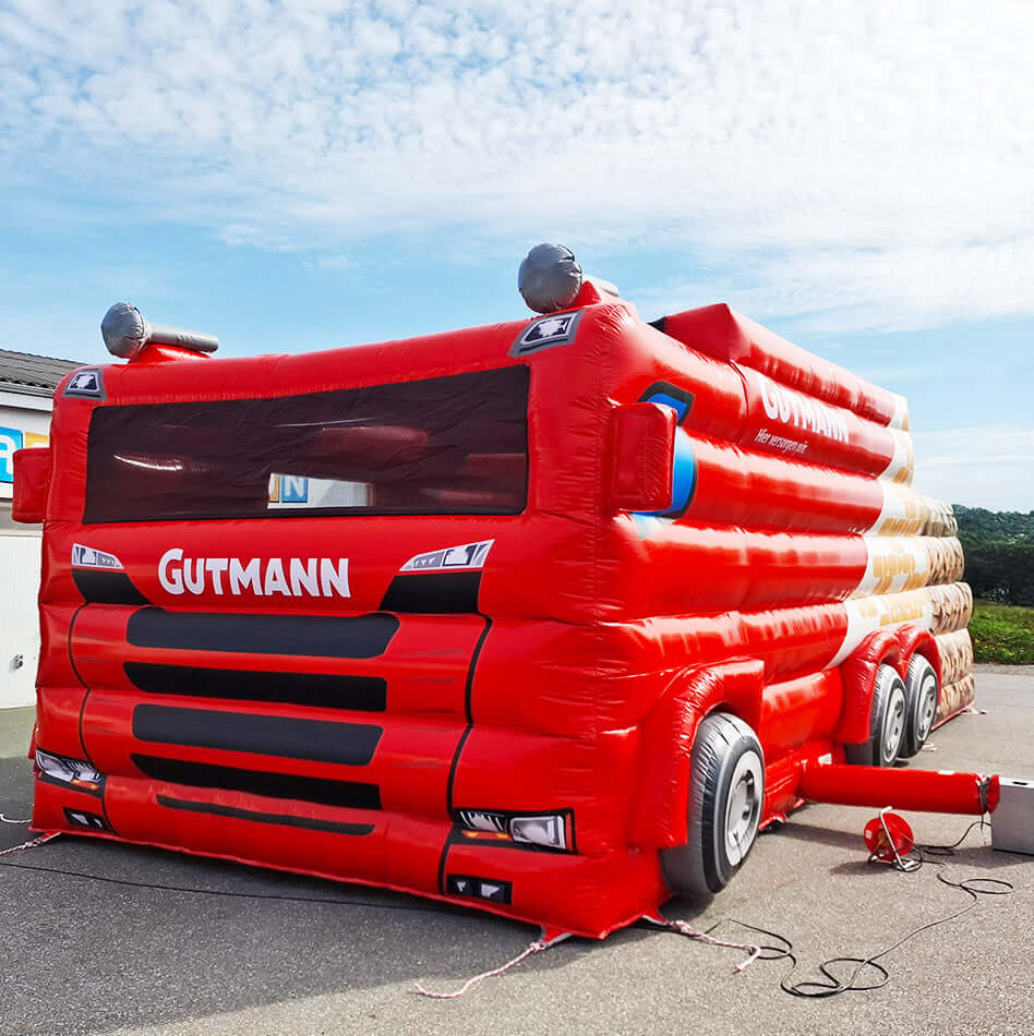 Für ein renommiertes Unternehmen aus Tirol (Österreich) haben wir diese auffällige Hüpfburg Lastwagen als Sonderanfertigung entwickelt. Das Design kombiniert eine realistische Lastwagen-Optik mit einer integrierten Rutsche und transportiert spielerisch die Markenbotschaft – entstanden auf Basis eines maßgefertigten CI-Konzepts für Hüpfburgen, das individuelle Gestaltung und starke Markenpräsenz vereint. Farben, Logos und Produktnachbildungen wurden exakt auf die Corporate Identity abgestimmt – perfekt für Messen, Roadshows und Firmenevents.