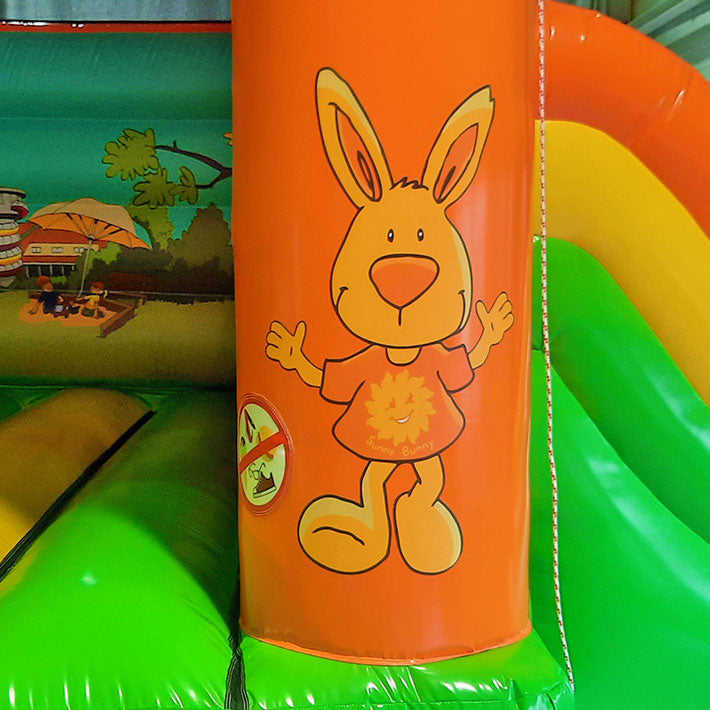 Hüpfburg Maskottchen Sonnentherme mit Rutsche