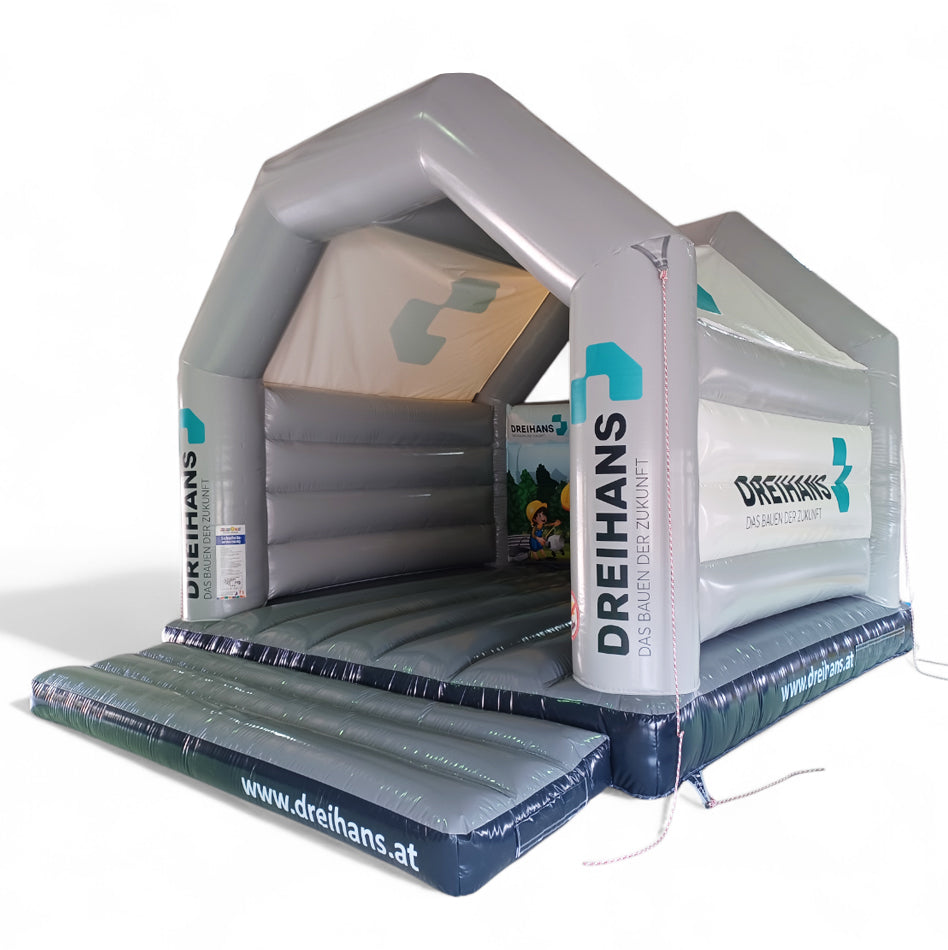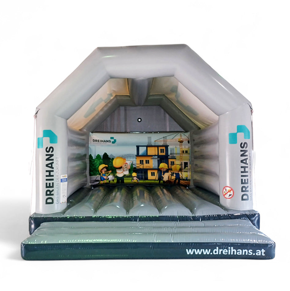 Hüpfburg mit Werbung Dreihans Baustelle