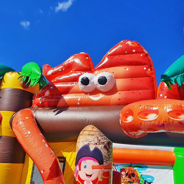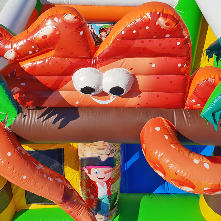Wer eine Multiplay Hüpfburg Pirat kaufen möchte, entscheidet sich für ein Abenteuer voller Spielspaß und Entdeckungen. Diese aufblasbare Hüpfburg im Piratenschiff-Design bietet zahlreiche Spielmöglichkeiten – von der großen Hüpffläche bis zur seitlichen Rutsche, ergänzt durch bunte Hindernisse und kreative Deko wie eine riesige Krake, Palmen und Kanonen. Ideal für private Feiern oder Events im Verleih: Diese Hüpfburg vereint Action, Sicherheit und kreative Gestaltung und ist das perfekte Highlight für jedes Kinderfest. Jetzt kaufen und unvergessliche Momente schaffen!