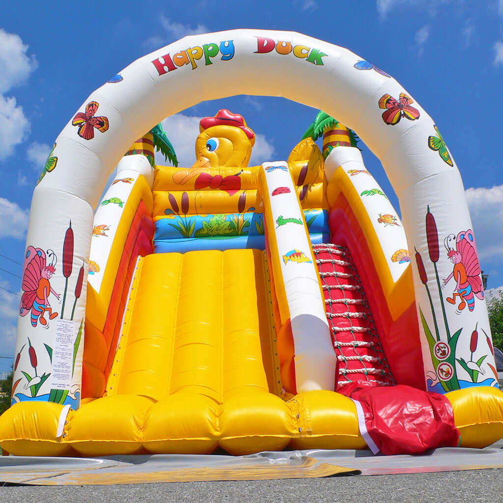 Fröhlicher Rutschspaß mit austauschbarer Rutschplane – die Riesenrutsche Ente für Kinderfeste und Events