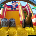 Die Hüpfburg Riesenrutsche Pirat ist ein visuelles und spielerisches Erlebnis für kleine Abenteurer – mit detailreicher Gestaltung inklusive Steuerrad, Kanone und Palmen. Der leuchtend gelbe Rutschbereich aus strapazierfähigem 900 g/m² PVC sowie der geschützte, austauschbare Aufstieg sorgen für maximale Sicherheit im Einsatz. Das gesamte Modul erfüllt die Norm EN 14960 und besteht aus speichelechtem, elastischem, schwer entflammbarem Material. Wer thematisch gestaltete Rutschen kaufen möchte, wird in unserem Sortiment an aufwendig dekorierten Hüpfburg Rutschen garantiert fündig.