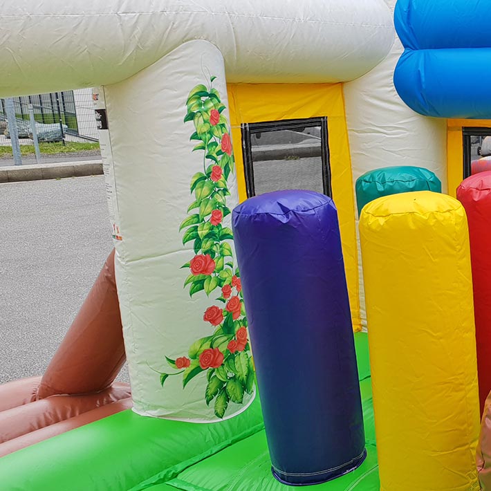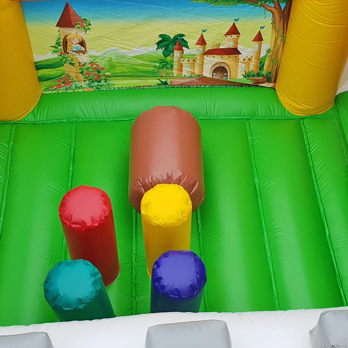 Wer eine Hüpfburg Ritter möchte, trifft mit diesem farbenfrohen Multiplay-Modell die perfekte Wahl. Entdecken Sie noch viele weitere Hüpfburgen in aufregenden Designs zum kaufen! Das detailreiche Ritterburg-Design mit zwei hohen Türmen und einer großen Rutsche fesselt Kinder sofort. Eine großzügige Hüpffläche lädt zum Austoben ein, während bunte Hindernisse und Spielelemente für zusätzliche Action sorgen. Die mit einem Sicherheitsnetz ausgestattete Rutsche verhindert das Herausklettern und garantiert maximale Sicherheit. Dieses Modell kombiniert Spielfreude, Langlebigkeit und kindgerechtes Design – perfekt für kleine Abenteurer.