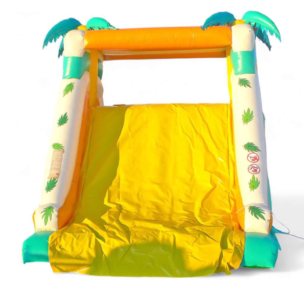 Mit der Rutsche Easy Dschungel holen Sie sich echtes Urlaubsfeeling auf Ihre Veranstaltung. Die leuchtenden Farben, das tropische Motiv mit Flamingo und Palmen sowie die robuste Konstruktion machen dieses Modell zu einem Blickfang auf jedem Event. Die beidseitig geschlossenen Seitenwände sorgen für maximale Sicherheit, während die zentrale, breite Rutschfläche aus strapazierfähigem PVC (900 g/m²) für ungetrübten Rutschspaß sorgt – hier entdecken Sie weitere kleinere oder größer Spiele für unvergessliche Erlebnisse!