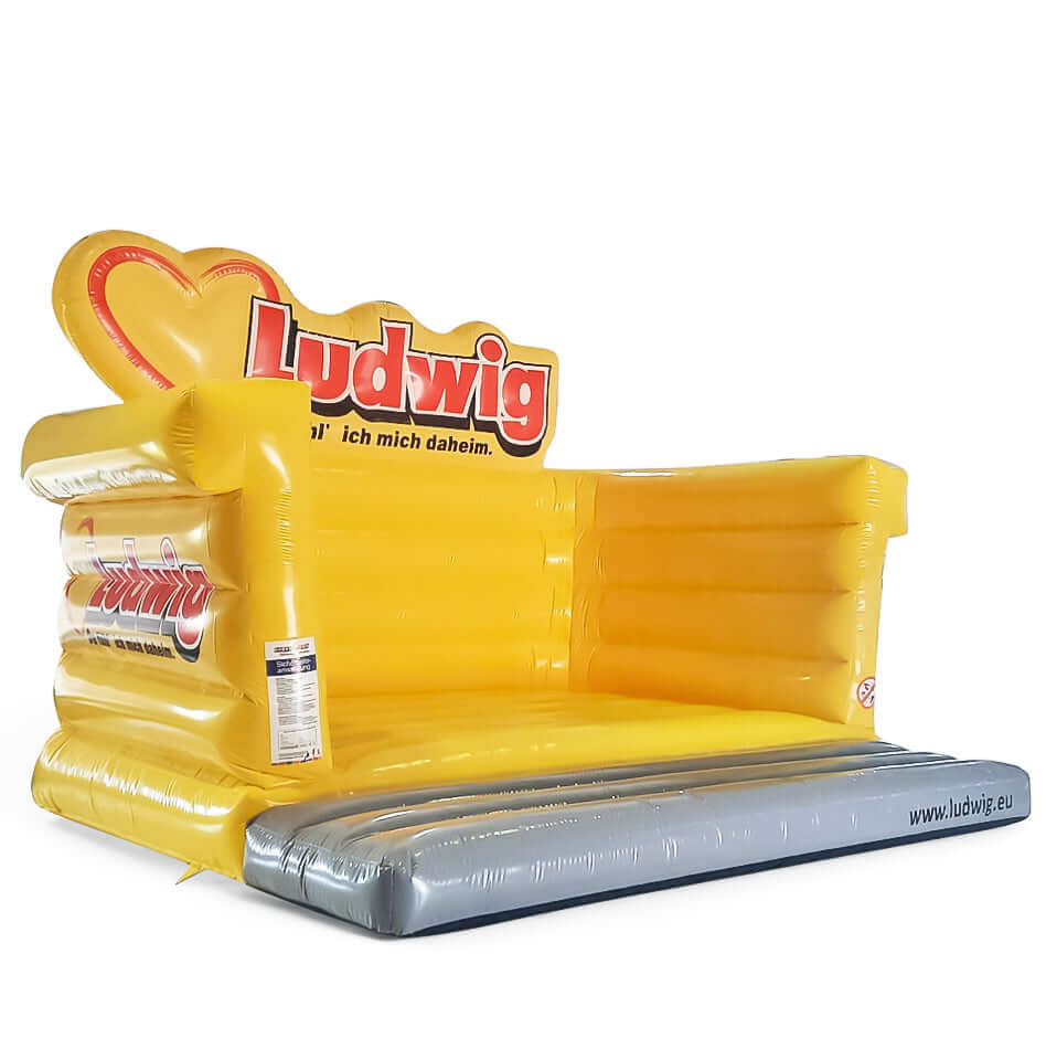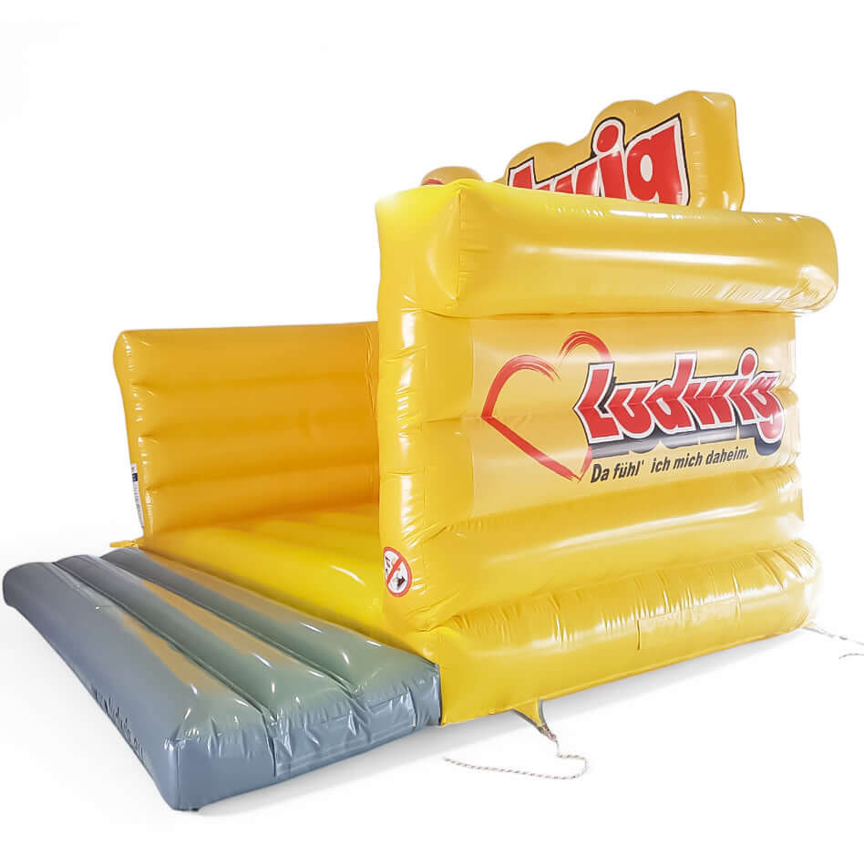 Markenmöbel zum Hüpfen – Sonderanfertigung Hüpfburg in Sofa-Optik