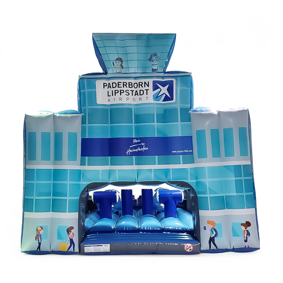 Die individuell angefertigte Hüpfburg in Form eines Flughafen-Towers bietet ein einzigartiges Spielerlebnis für Kinder und sorgt für eine auffällige Werbewirkung. Mit ihrem detailreichen Design, das den Kontrollturm eines Flughafens nachbildet, gehört sie zu den flexibel gestaltbaren Event-Hüpfburgen aus unserem Sortiment und ist ideal für Events, Messen oder Promotions geeignet. Hochwertige Materialien und Sicherheitsstandards garantieren maximalen Spaß und Langlebigkeit. Perfekt für Unternehmen, die eine außergewöhnliche und interaktive Markenpräsentation wünschen.