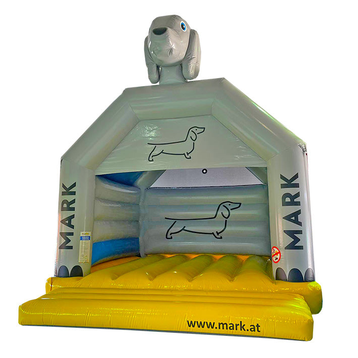 Hüpfburg Sonderanfertigung Hund Dackel mit Logo