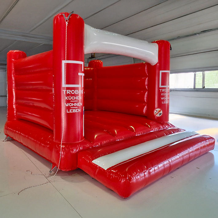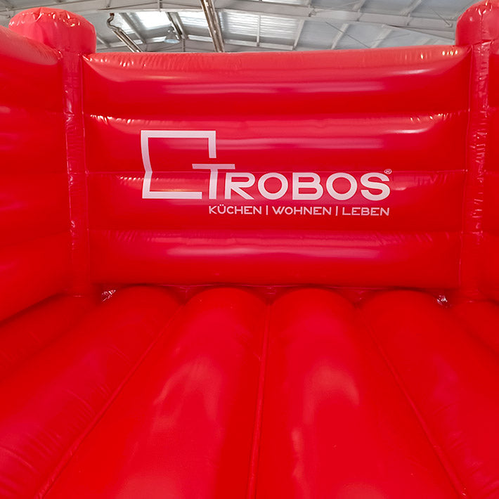Für ein Unternehmen, das Küchen und Wohnerlebnisse gestaltet, haben wir eine Werbehüpfburg in Ihren Unternehmensfarben und mit Logos designt. Haben wir Ihr Interesse geweckt? Jetzt individuelle Hüpfburg anfragen!