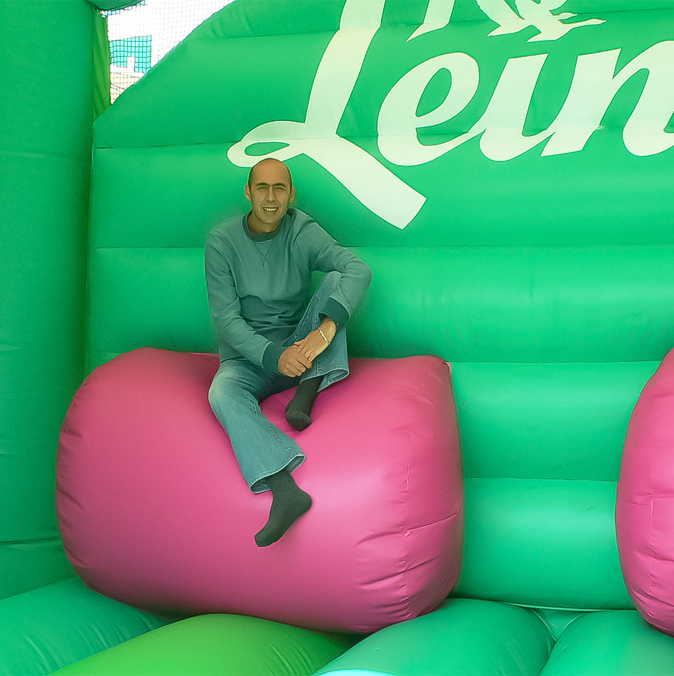 Diese Hüpfburg im Himmelbett Motiv mit Gardinen und Kissen überzeugt mit grüner Farbgebung & Bärchenmotiven. Die großzügige Sprungfläche sowie hohe Seitenwände und ein schützendes Dach sorgen für sicheres Spielen – ein auffälliges Modul mit besonderem Design, inspiriert von maßgeschneiderten Eventmodulen in Hüpfburg-Bauweise. Gefertigt aus wetterfestem, strapazierfähigem Material, ist sie ideal für Kinderfeste, Familienevents oder Veranstaltungen.