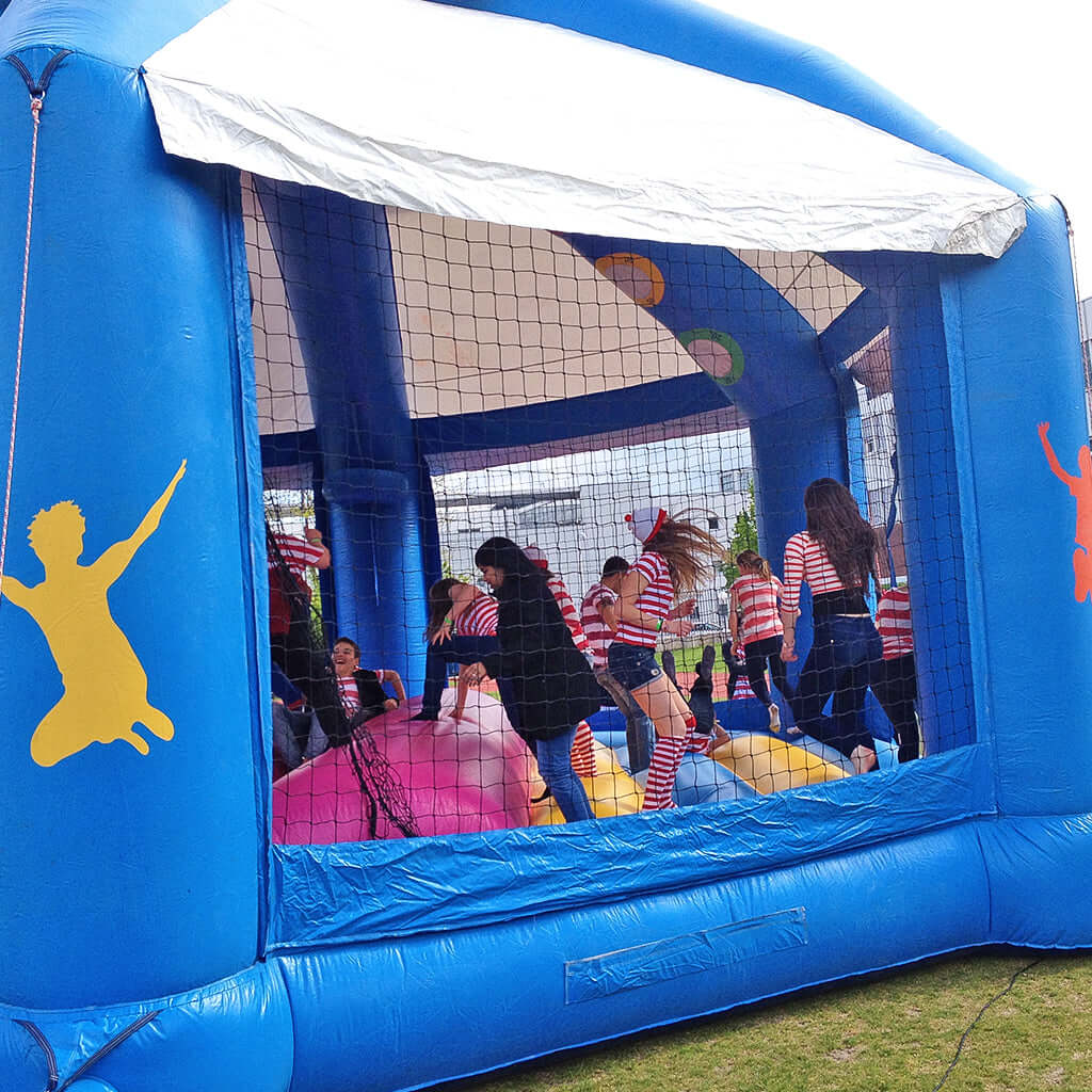 Die Hüpfburg High Jump lässt Kinder spielerisch hoch hinaus springen. Leuchtende Farben in Blau, Pink und Gelb sowie das stabile Dach sorgen für Schutz und setzen optische Akzente. Zwei aufblasbare Sprungbögen ermöglichen spektakuläre Salti und Tricks auf der großzügigen Sprungfläche. Eine robuste Netzkonstruktion bietet maximale Sicherheit und klare Sicht – perfekt für Stadtfeste, Kindergeburtstage und Firmenfeiern. Noch mehr tolle Hüpfburgen für Ihr Event finden Sie auf dieser Übersichtsseite, um das Sprungvergnügen ideal zu ergänzen. Jetzt kaufen und kleinen Akrobaten unvergessliche Erlebnisse ermöglichen!