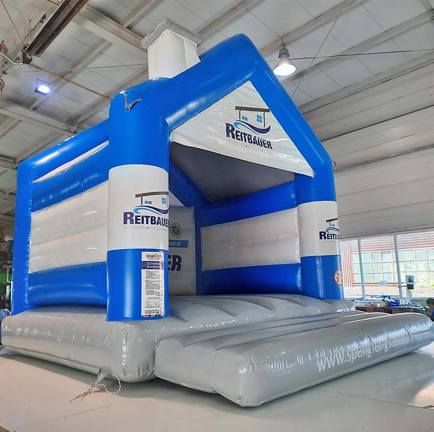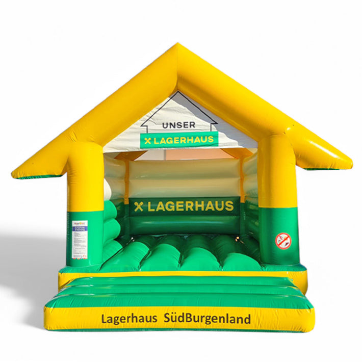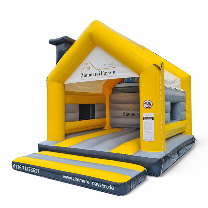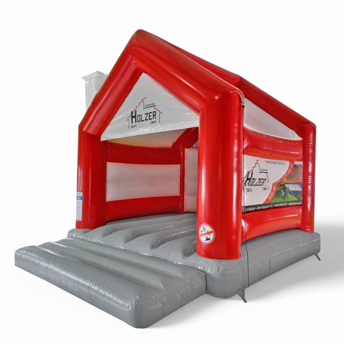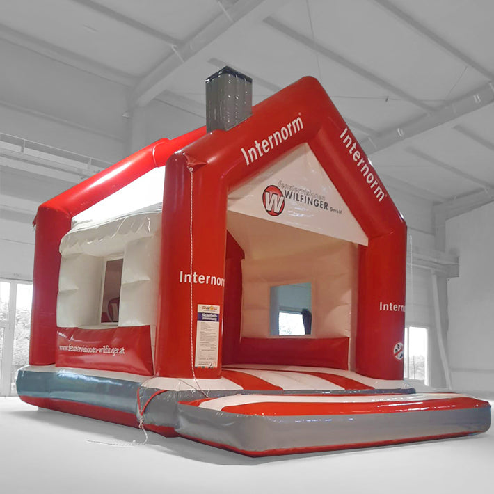 Ihre Marke unter Dach und Fach – Hüpfburg Typ B im Hausdesign