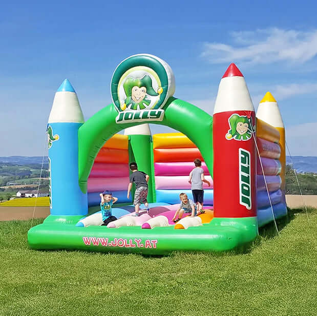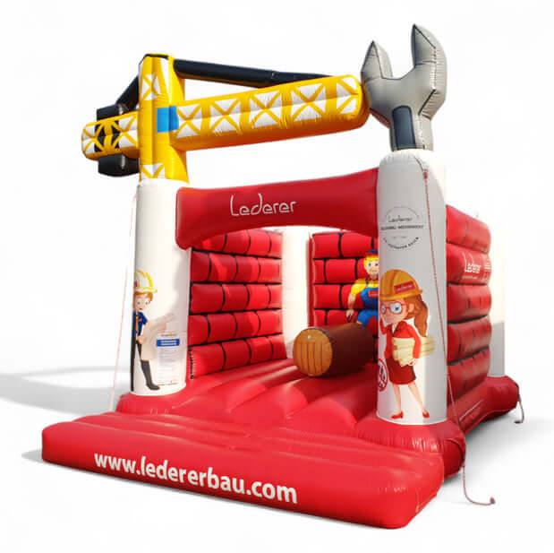 Als echte Sonderanfertigung passen wir Farben, Logos und Grafiken individuell an Ihr Unternehmen an – für einen unverwechselbaren Markenauftritt mit Wiedererkennungswert. Dank unserer langjährigen Erfahrung setzen wir auch spezielle Sonderformen perfekt um und gestalten Ihre Hüpfburg maßgeschneidert nach Ihren Vorstellungen. Optional statten wir unsere Werbehüpfburg Typ D mit Rutsche, Hindernissen oder beeindruckenden 3D-Elementen aus – optimal auf Ihre Marke abgestimmt.