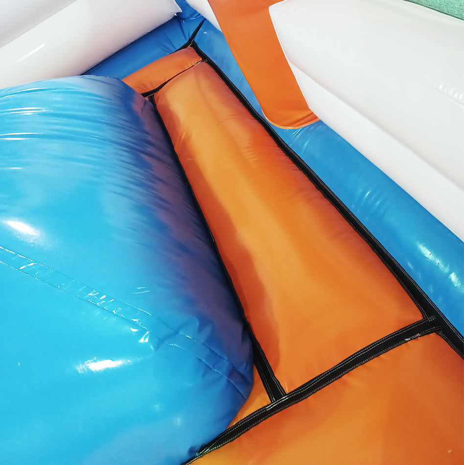 Dieser speziell für einen Kunden gefertigte Wabbelberg bietet ultimativen Hüpf- und Spielspaß für Kinder und ist ein Highlight auf jeder Veranstaltung. Das moderne Design in leuchtendem Blau, Weiß und Orange zieht sofort die Aufmerksamkeit auf sich – eine Umsetzung, die auf den Prinzipien unserer kundenindividuellen Hüpfburgfertigung basiert – und schafft eine sportlich-dynamische Atmosphäre. Der zentrale Wabbelberg sorgt mit seiner instabilen Oberfläche für ein spannendes Spielerlebnis, das Balance, Geschicklichkeit und Koordination der Kinder fördert.