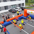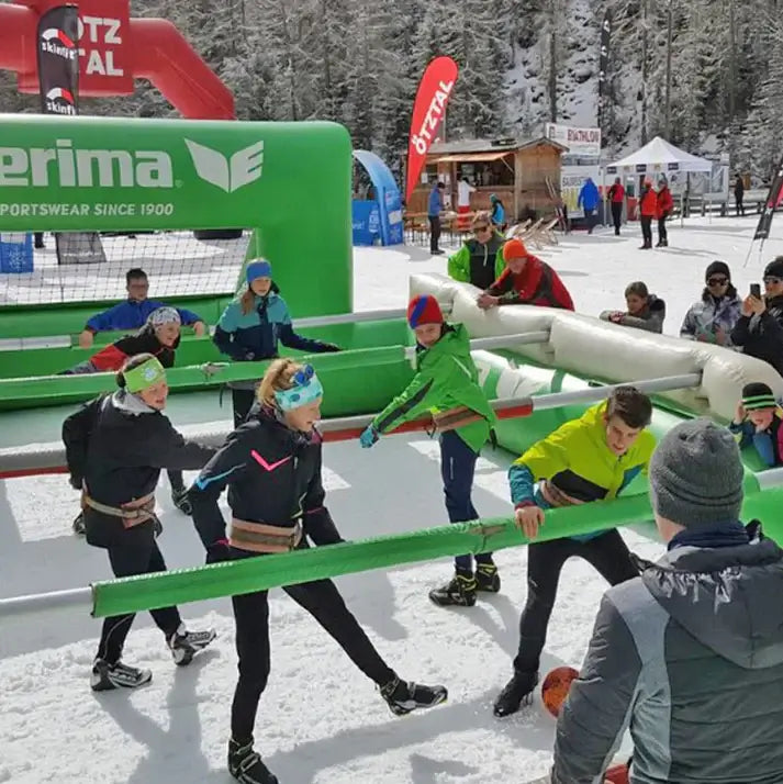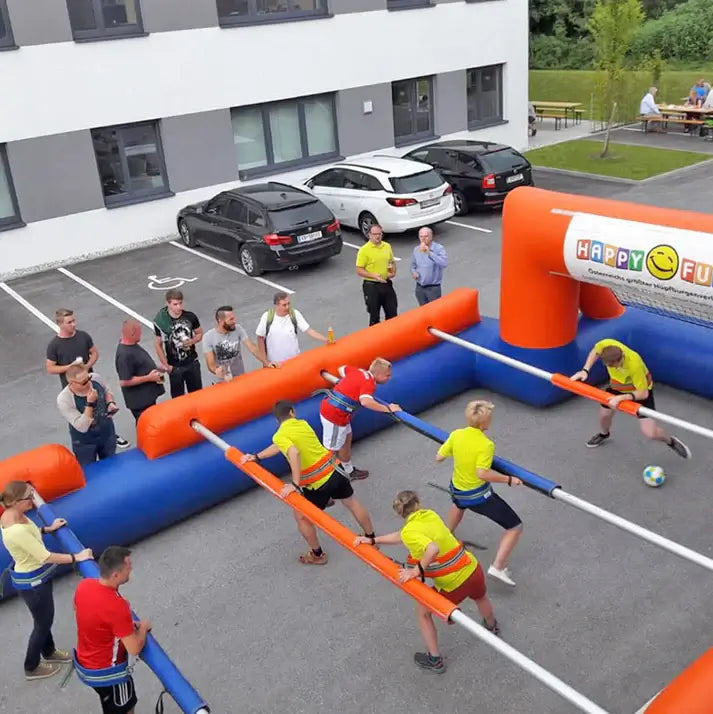 Der aufblasbare Menschenkicker mit eloxierten Alustangen bringt echtes Stadionfeeling aufs Event – wahlweise für 10 oder 12 Spieler. Teams bewegen sich wie beim Tischkicker synchron entlang robuster Alustangen, die Kommunikation und Koordination erfordern. Hergestellt in Österreich und mit durchdachtem Stecksystem ausgestattet, ist dieses Modul auf Langlebigkeit und intensive Nutzung ausgelegt. Für noch mehr verwandte Produkte mit Teamfaktor lohnt sich ein Blick in unsere Auswahl.
