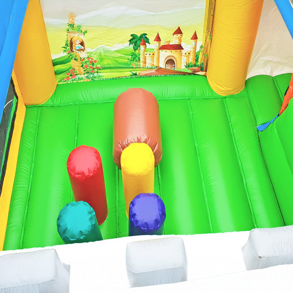 Die Multiplay Hüpfburg Ritter 5,3x5,6 m entführt kleine Abenteurer in eine Welt voller Ritter, Burgen und aufregender Herausforderungen. Mit ihren detailreichen Türmen, Fahnen und mittelalterlichen Grafiken bietet diese Hüpfburg ein authentisches Rittererlebnis. Die integrierte Rutsche und die zahlreichen Hindernisse und Kletterelemente sorgen für jede Menge Abwechslung und Spielspaß. Kinder können springen, klettern, rutschen und sich wie echte Burgbewohner fühlen – ideal zum mieten für Kindergeburtstage, Mittelalterfeste, Schulfeste oder Familienfeiern.