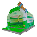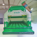 Für eine Malerfirma haben wir eine Werbe-Hüpfburg entworfen, die perfekt zum Unternehmen passt. Sie erstrahlt in den Unternehmensfarben, während ein riesengroßer aufblasbarer Pinsel auf dem Dach die Verbindung zum Malerhandwerk symbolisiert – ein Beispiel, das hervorragend in unser Portfolio eigens produzierter Hüpfburgen mit Wunschdesign passt. Das Design suggeriert, dass die Hüpfburg frisch gestrichen wurde, wobei die "Farbe" scheinbar noch tropft – ein kreativer Effekt, der die Aufmerksamkeit auf sich zieht. Mehrere Logos des Unternehmens runden das Design ab und stärken die Markenpräsenz auf spielerische Weise.