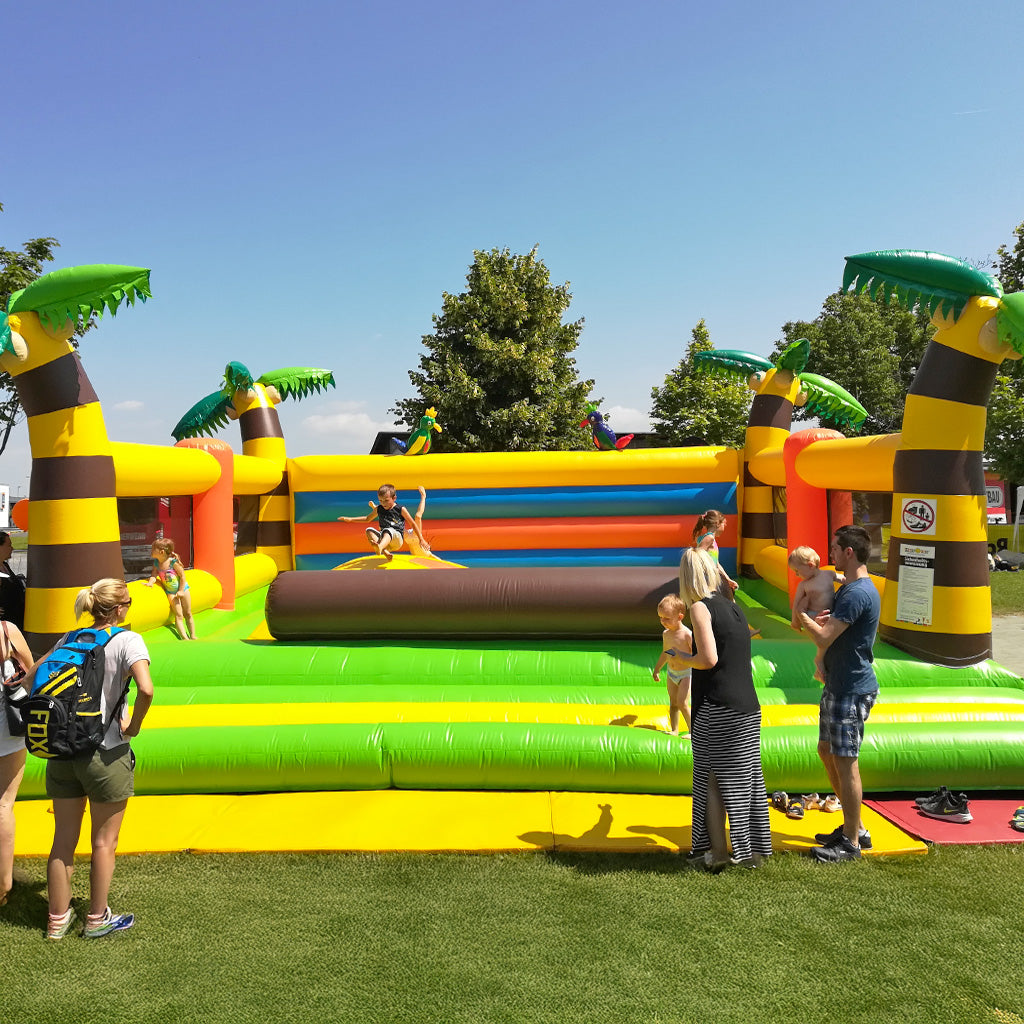 Dieser individuell gefertigte Wabbelberg im Dschungel-Design sorgt mit leuchtenden Farben, tropischen Palmen und einer spannenden Herausforderung für jedes Event. Die instabile Oberfläche fördert spielerisch die motorischen Fähigkeiten, während hohe Sicherheitswände für sicheren Spielspaß sorgen. Mit robusten Materialien und EN 14960-Zertifizierung ist er perfekt für Themenpartys, Sommerfeste oder Indoor-Spielparks. Einfach aufzubauen und zu transportieren – ein unvergessliches Highlight.
